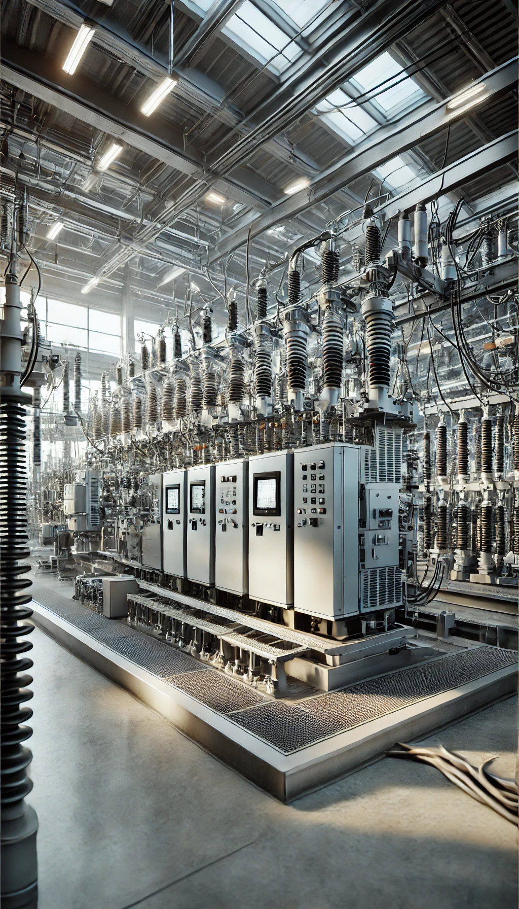 Stacja transformatorowa wysokiego napięcia z nowoczesnymi szafami sterowniczymi