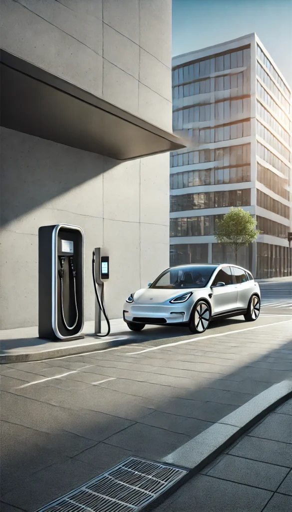Stacja ładowania pojazdów elektrycznych (EV) w środowisku miejskim z podłączonym samochodem